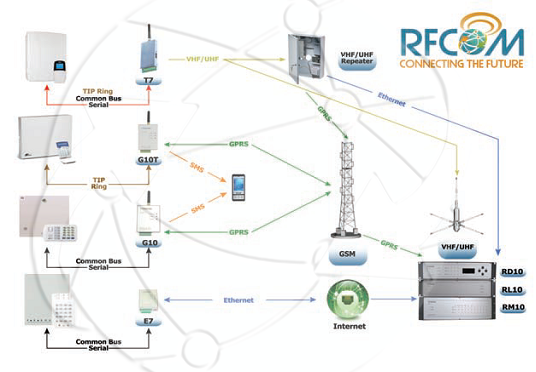 Η RFCOM προτείνει ένα RF module αρκετά μικρό ώστε να μπορεί να τοποθετηθεί, π.χ. εντός της εξωτερικής σειρήνας, συνδέεται μέσω BUS ή και με προσομοίωση τηλεφωνικής γραμμής. Το RF module ουσιαστικά ανατρέπει τον ανταγωνισμό, στέλνοντας όλα τα δεδομένα του Contact ID μέσω RF, και όχι απλά ένα μεμονωμένο σήμα συναγερμού όπως γινόταν μέχρι σήμερα. Όλα τα modules που αναφέρθηκαν είναι συμβατά και συνεργάζονται με τις αντίστοιχες κονσόλες της Trikdis, ανατρέποντας τα δεδομένα της αγοράς.