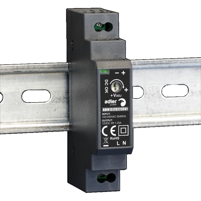 ADLER ADIN1512 12V 15W 1.25A ΤΡΟΦΟΔΟΤΙΚΟ ΡΑΓΑΣ 1 DIN Vadj > Τάση εξόδου: 11.5-13.8VDC > Ρεύμα εξόδου: 1.25A > Ισχύς εξόδου: 15W > Βαθμός προστασίας: IP20 > Θερμοκρασία λειτουργίας: -20°C έως +60° C > Διαστάσεις (L x W x H): 18x92.5x58.5 mm > Τοπο