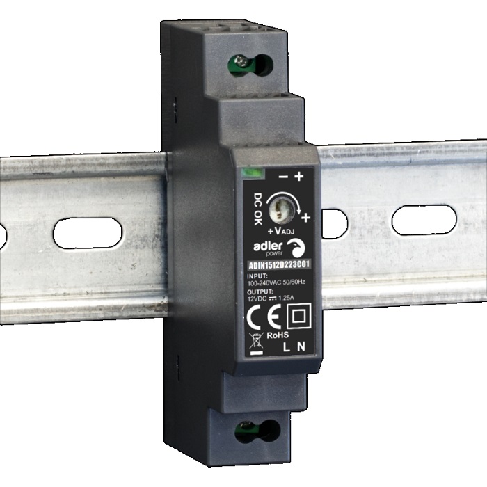 ADLER ADIN1524 24V 15W 0.63A ΤΡΟΦΟΔΟΤΙΚΟ ΡΑΓΑΣ 1 DIN Vadj > Τάση εξόδου: 23-25VDC > Ρεύμα εξόδου: 0.63A > Ισχύς εξόδου: 15W > Βαθμός προστασίας: IP20 > Θερμοκρασία λειτουργίας: -20°C έως +60° C > Διαστάσεις (L x W x H): 18x92.5x58.5 mm > Τοποθέτη