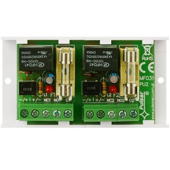 PULSAR AWZ512 ΜΟΝΑΔΑ ΡΕΛΕ ΔΙΠΛΗ > Τροφοδοσία: 10-13VAC, 10-16VDC > Ρελέ: 2 x C/NO/NC, 1A@30VDC ή 1A@50VAC > Ασφάλειες: 2 x 1.5A > Διαστάσεις: 80 x 20 x 43 [+/-2 mm]