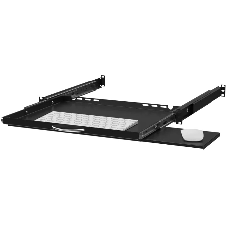 STAL RSR19-1U-350B-KM 19" 1U ΤΗΛΕΣΚΟΠΙΚΟ ΡΑΦΙ ΜΕ ΘΕΣΗ ΓΙΑ ΠΛΗΚΤΡΟΛΟΓΙΟ ΚΑΙ ΠΟΝΤΙΚΙ > Χρώμα: μαύρο > Δυνατότητα ρύθμισης των λωρίδων στήριξης σε εύρος από 350 έως 550 mm. > Η μεταλλική λαβή διευκολύνει την εξαγωγή του ραφιού. > Η συρόμενη βάση ποντικ