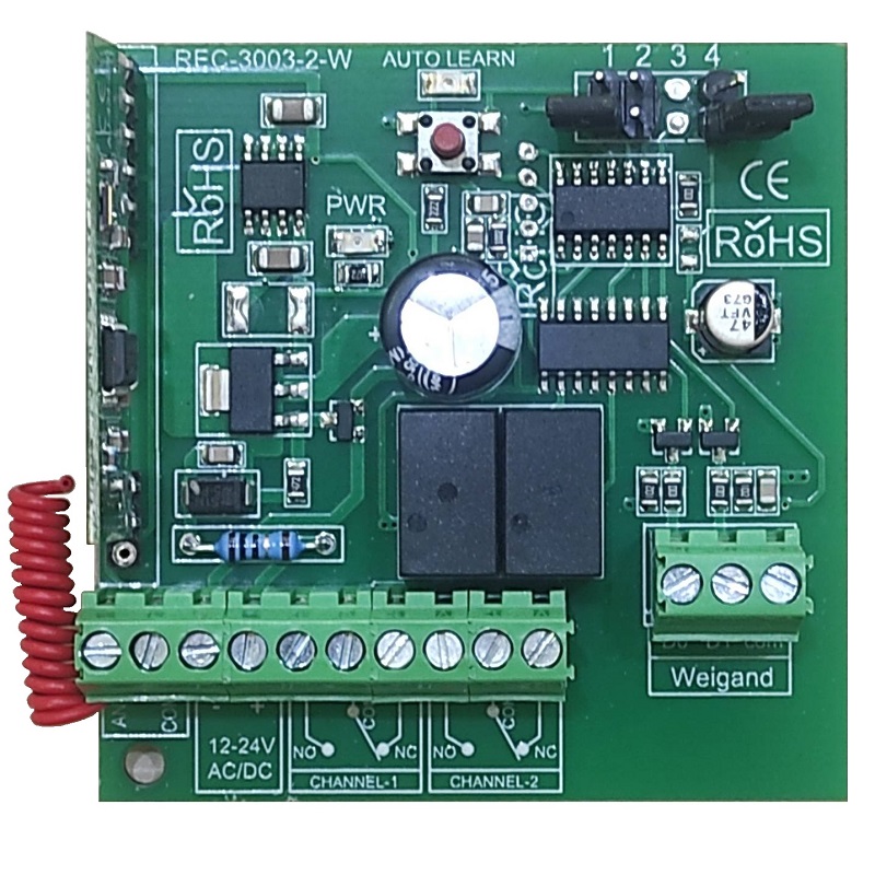 ΑΣΥΡΜΑΤΟΣ ΔΕΚΤΗΣ REC-3003-2-W 1 ΚΑΝΑΛΙΟΥ WIEGAND 26 > Τάση τροφοδοσίας: 12-24VDC/VAC > Κατανάλωση σε κατάσταση ηρεμίας: 15mA > Μέγιστη κατανάλωση: 65mA > Μέγιστο ρεύμα επαφών: 0.5A/125VAC, 1A/30VDC > 1 έξοδος rele NO/COM/NC > 1 έξοδος Wiegand για