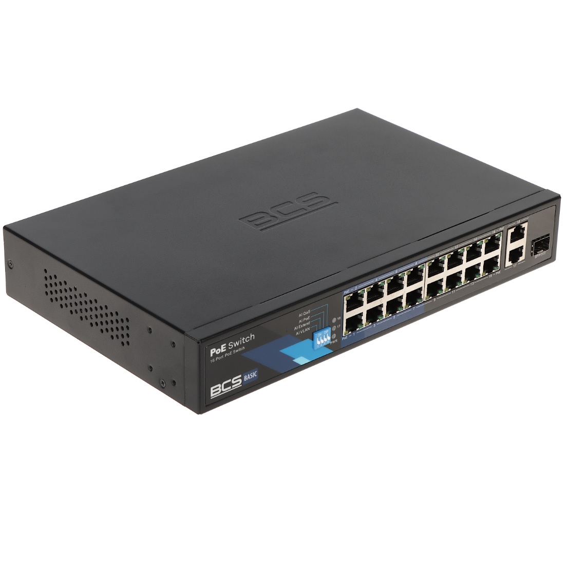 BCS-B-SP1602G-1SFP 16-PORT POE 10/100Mbps + 1-PORT SFP GIGABIT UPLINK + 2-PORT ETHERNET GIGABIT POE SWITCH > 16 θύρες POE 802.3af/at 10/100Mbps 1 θύρα SFP 10/100/1000Mbps uplink 2 θύρες RJ45 10/100/1000Mbps uplink > Μέγιστη ισχύς εξόδου ανά θύ