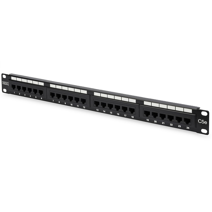 DIGITUS DN-91524U 1U PATCH PANEL CAT5E 24-PORT ΜΑΥΡΟ > Κατηγορία μετάδοσης: CAT5e > Εφαρμογή: έως 100MHz, 10/100Base-T, 1GBase-T > Πρότυπα: ISO/IEC 11801 2nd Ed., EN 50173-1, EIA/TIA 568-C > Μήκος 19"(483mm) - κατάλληλο για τοποθέτηση σε racks 19"