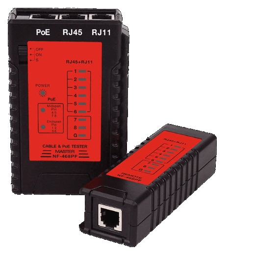 NOYAFA NF-468PF TESTER ΣΥΝΕΧΕΙΑΣ ΚΑΛΩΔΙΟΥ ΔΙΚΤΥΟΥ RJ45/ΤΗΛΕΦΩΝΟΥ RJ11 & POE > Μέγιστη απόσταση ελέγχου 2000m > Καλώδια:RJ45 δικτύου Cat5/5e/6/6a(UTP / STP) RJ11/12 τηλεφώνου Cat3(6P2C/6P4C/6P6C) > 8 ενδεικτικά led για γρήγορο test >
