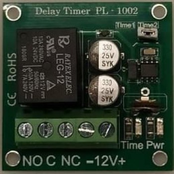 PL1004 TRIGGER TIMER - ΡΕΛΕ ΧΡΟΝΟΚΑΘΥΣΤΕΡΗΣΗΣ 0-4min Τρόπος λειτουργίας > Τροφοδοτείται με τάση 12VDC > Με το που δέχεται μια αρνητική εντολή στην είσοδο της οπλίζει το Relay και αρχίζει να μετράει τον χρόνο που έχουμε ορίσει με το ποτενσιόμετρο > Ό