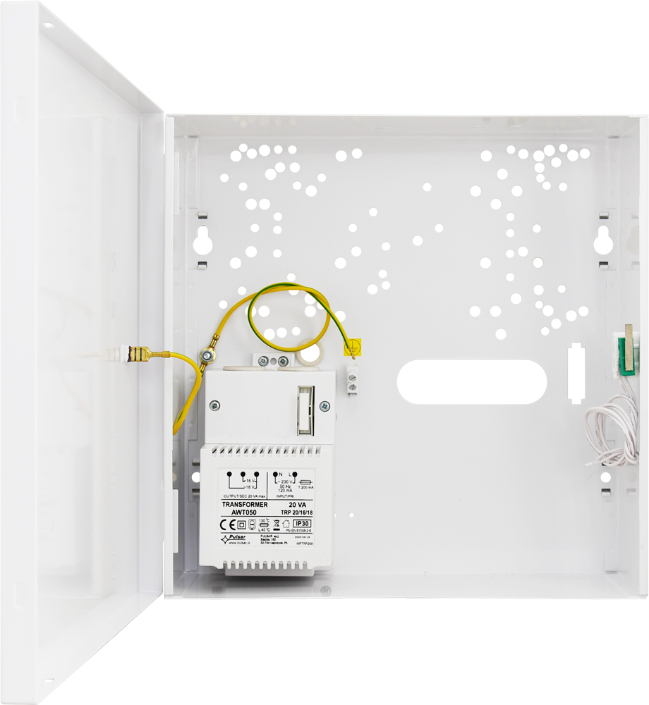 PULSAR AWO000 ΜΕΤΑΛΛΙΚΟ ΚΟΥΤΙ ΜΕ Μ/Σ TRP 20VA UNIVERSAL 250x250x80 BAT 7Ah MINI > Κουτί κατάλληλο για τοποθέτηση PCB των εταιρειών Satel, Risco, DSC, Paradox, Pyronix, Crow, Summit, Roel, EBS > Μετασχηματιστής: TRP 20VA - IP30, PC/ABS > Έξοδος μετασχ