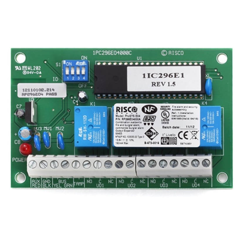 RISCO LIGHTSYS 4 OUTPUT EXPANDER(4 RELAY)(RP296E04000A) Επεκταση εξόδων RISCO κατάλληλη για πίνακες συναγερμού η οποία διαθέτει 4 προγραμματιζόμενα ρελέ > 4 Ρελέ (3Α) > Πλήρως προγραμματιζόμενες έξοδοι > Προστασία ρελέ > Πλήρη διαγνωστικά μέσω bus