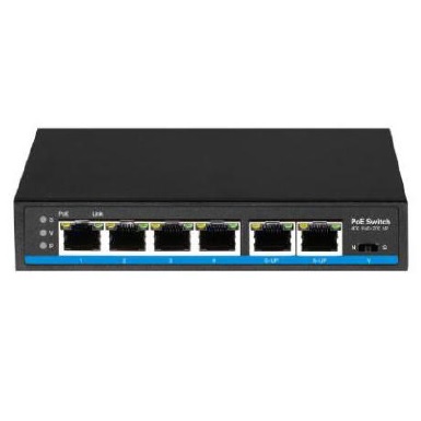 SKY PE204 4-PORT POE SWITCH 10/100Mbps(1 POE IN, 4 POE OUT)(INPUT:802.3af/at ή PASSIVE POE ή 9-57VDC & LAN) Διαθέτει 1 είσοδο POE 30W και 4 εξόδους POE IEEE802.3af/at Επίσης μπορεί να δουλέψει σαν κανονικό switch διότι διαθέτει και μία είσοδο UPLINK κ