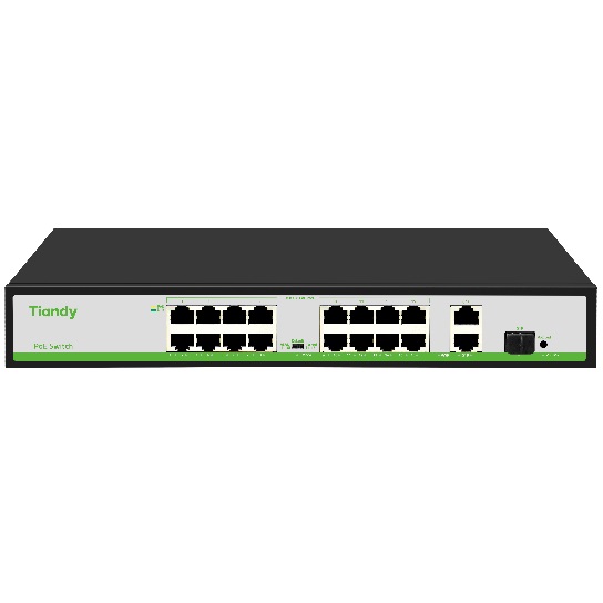 TIANDY TC-P3S019-H POE SWITCH 16 x 10/100Mbps PoE Ports + 2 x 10/100/1000Mbps RJ45 UPLINK PORTS + 1 x 10/100/1000Mbps SFP PORT RACK MOUNT > Τροφοδοσία: 100-240VAC > 16 x 10/100Mbps PoE Ports + 2 x 10/100/1000Mbps RJ45 UPLINK PORTS + 1 x 10/100/1000Mbp