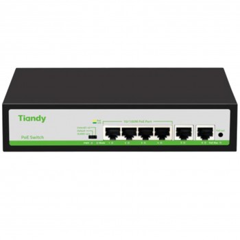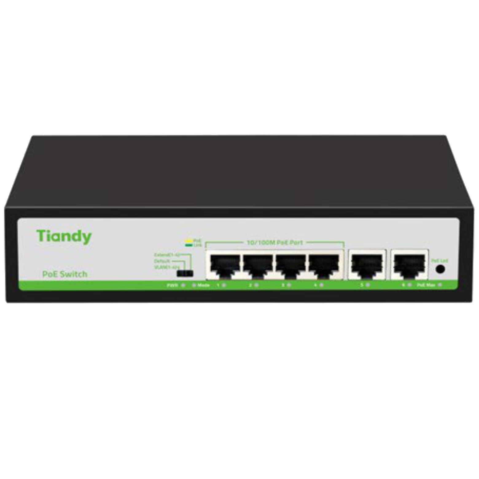 TIANDY TC-P3S06-F POE SWITCH 4 x 10/100Mbps PoE Ports + 2 x 10/100Mbps RJ45 UPLINK PORTS > Τροφοδοσία: 100-240VAC > 4 x 10/100Mbps PoE Ports + 2 x 10/100Mbps RJ45 UPLINK PORTS > Bandwidth: 1.2Gbps > PoE Protocol: IEEE802.3af (15.4W)