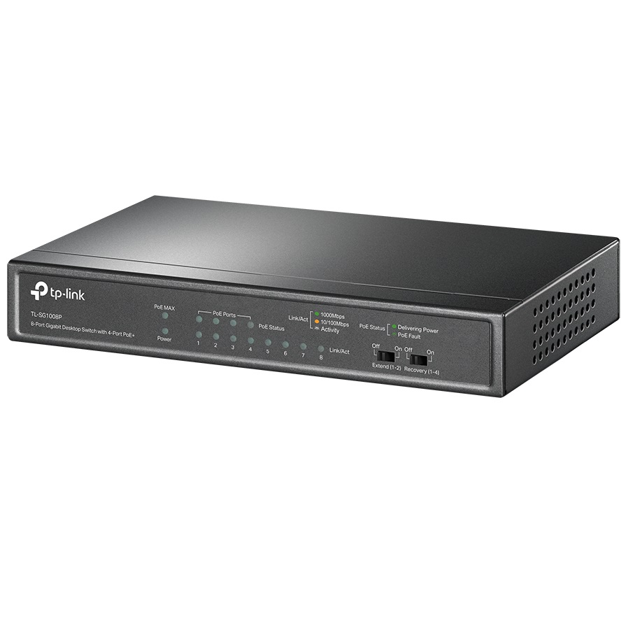 TP-LINK TL-SG1008P PoE+ 8 PORT 10/100/1000Mbps 4-PORT POE SWITCH 64W > 8 x 10/100/1000Mbps RJ45 ports > 4 x POE+ ports > Έως 30W ισχύς ανά θύρα > Έως 64W συνολική ισχύς > Λειτουργία extend για αποστάσεις έως 250m > Τροφοδοσία: 53.5VDC / 1.31A >