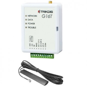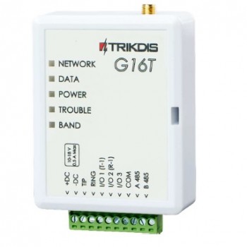 TRIKDIS G16T 2G ΧΩΡΙΣ ΚΕΡΑΙΑ > Πλαστικό κέλυφος για γαλβανική απομόνωση > Σύνδεση στο πίνακα μέσω τηλεφωνικής γραμμής (TIP/RING επαφές) > 3 I/O κλέμες που μπορούν να προγραμματιστούν ως είσοδοι(NC/NO) ή έξοδοι(OC - 0.15A , 30VDC max) > Τροφοδοσία: 1