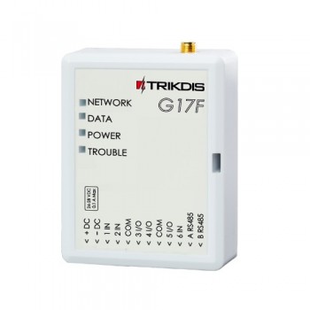 TRIKDIS G17F 2G ΧΩΡΙΣ ΚΕΡΑΙΑ Το G17F 2G είναι συσκευή επικοινωνίας που χρησιμοποιείται για την μετάδοση των συμβάντων, απο πίνακες πυρανίχνευσης προς το ΚΛΣ μέσω GPRS. Επίσης έχει τη δυνατότητα να ενημερώνει το τελικό χρήστη μέσω της εφαρμογής Protegus